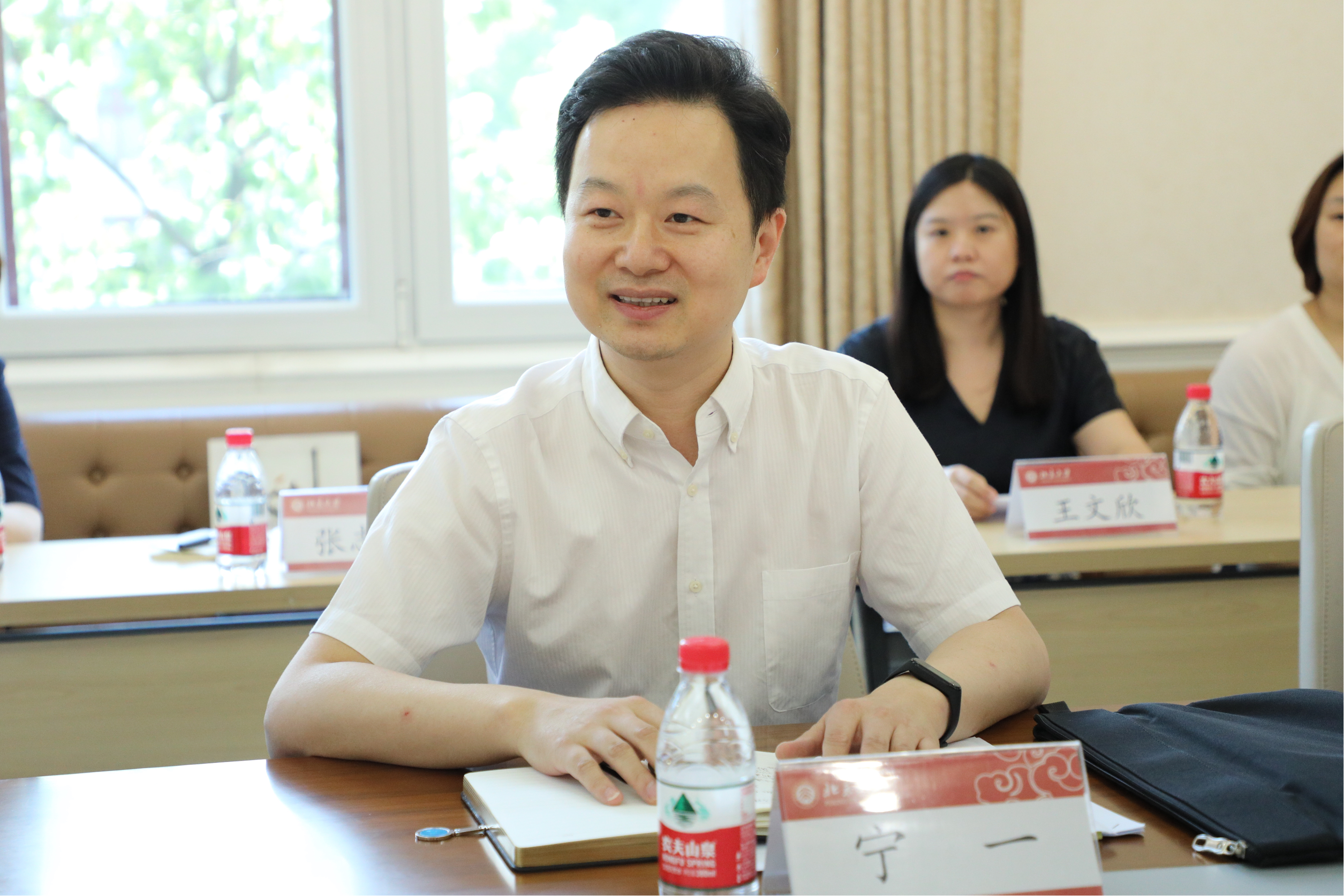 宁一副馆长回顾总结了华侨历史博物馆与6165cc金沙总站检测中心前期的合作成果。宁一表示,自去年以来,馆院双方已在党建活动、志愿服务、展览策划、藏品研究等方面进行了一系列探索和尝试。2022年10月6165cc金沙总站检测中心党政领导班子率学院教师赴中国华侨历史博物馆调研。今年5月,6165cc金沙总站检测中心的志愿者同学们协助馆方开展“华踪医迹——东南亚华侨华人与中医药文化展”英语直播讲解。直播内容在各大平台播出,累计在线观看量达到938400人次。最后,宁一介绍了双方合作的设想,提出可以从思想政治教育和学科建设两方面推进合作,开展协同育人工作。