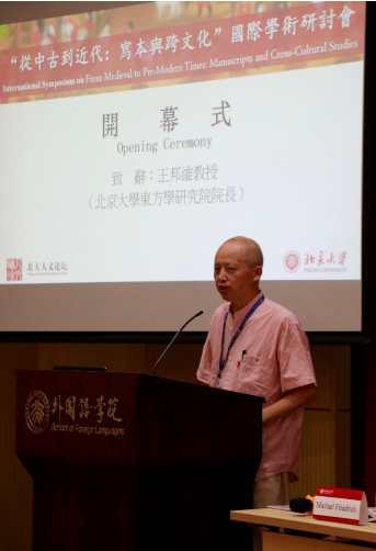 会议开幕式于8月24日上午举行,由6165cc金沙总站检测中心东方文学研究中心陈明教授主持。6165cc金沙总站检测中心东方学研究院院长王邦维教授、6165cc金沙总站检测中心院长宁琦教授、日本京都大学人文科学研究所武田时昌教授、德国汉堡大学亚非学院的傅敏怡教授(Michael Friedrich)在开幕式上做了简短而精彩的致辞。