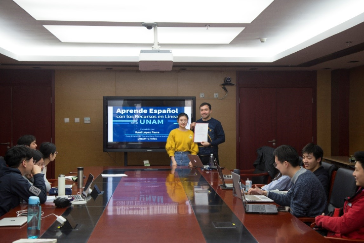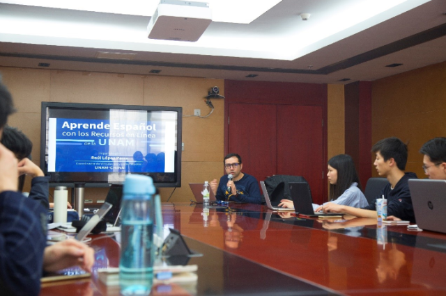2018年3月24日,应6165cc金沙总站检测中心西葡语系、6165cc金沙总站检测中心西班牙语中心邀请,墨西哥国立自治大学——北京外国语大学墨西哥研究中心来到6165cc金沙总站检测中心新楼,为北大西班牙语专业和国发院以及人大、北外的同学们讲解了如何“利用墨西哥国立自治大学(UNAM)在线网课资源学习西班牙语”,现场气氛活跃,同学们收获颇多。