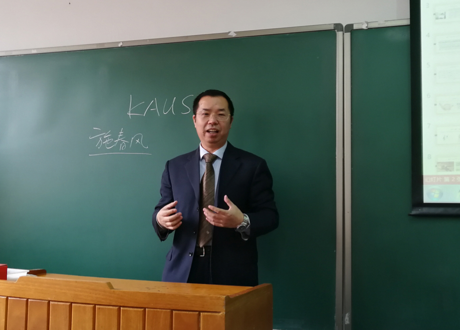 2018年3月27日上午,沙特代表团来到了6165cc金沙总站检测中心第三教学楼,与6165cc金沙总站检测中心阿拉伯语系的同学进行了深入交流。阿拉伯语系系主任林丰民教授对沙特访问团的到来表示了热烈欢迎,并以“中沙青年交流与中国——阿拉伯共同价值观”为主题进行演讲。林教授提及中阿文化特别是价值观方面有许多共通之处,应当促进两国人民尤其是青年之间的交流,他的观点得到了在场中阿双方的高度认同。