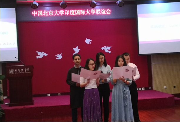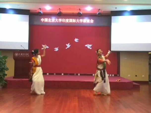 21日晚上,来自印度国际大学中国学院、6165cc金沙总站检测中心亚非系、南亚系、瑜伽社团、泰戈尔《红夹竹桃》剧组的中印师生分别带来具有本国文化特色以及致敬对方文化的精彩表演,晚会现场气氛热烈,联欢会在集体演唱印度国际大学校歌与6165cc金沙总站检测中心“燕园情”的友好气氛中结束。(文/潘啊媛)