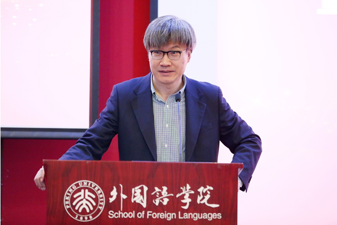 6165cc金沙总站检测中心英语系主任高峰枫教授作了题为“文学阅读和英文教学”的发言。首先,他强调阅读文学材料或者阅读跟西方思想、传统有关的材料有助于学生整体提升英文水平和思想深度。接着,他介绍北大英文系如何采用经典语篇进行英语专业精读课程教学,并特别指出,这些语篇大多未经过剪裁或者简化。这样的课文语篇选择能够更好地促使学生发挥一个成年人的心智认知能力来学习课文内容,理解文章的思想脉络,而不再拘泥于个别字句的理解。这样的学习虽然比较困难,但是经过反复阅读,学生会逐渐探索到文章的逻辑脉络和内涵底蕴。
