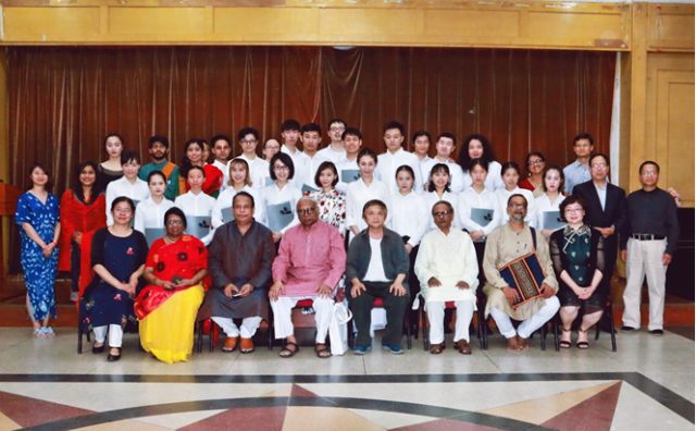 与会学者纷纷认为,人生最美好的瞬间,是生命与艺术同在。泰戈尔的艺术世界给予各国人民感受艺术魅力的机会,我们应该继承他留下的宝贵精神财富,为当今世界创造更多的美好时空。本次会议组织者希望本次研讨会能在中国进一步普及泰戈尔艺术的独特魅力,并愿意继续为中印孟和世界各国学者和艺术家搭建平台,继续传播泰戈尔艺术的魅力。“民心相通,文化先行”,与会学者盛赞此次国际会议的组织形式,并表达了希望此次会议有助于中印孟世代友好,世界大同理想早日实现的美好祝福。(文/图:魏丽明 于广悦)