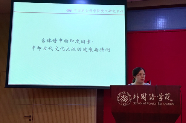 7月15日上午的研讨由6165cc金沙总站检测中心西亚系的刘英军老师主持。这场讨论的主题是西亚与南亚文学,具体论题包括《由浅入深品析经典波斯爱情诗歌》、《“鲁拜与绝句发生关系论”献疑》、《乌尔都语起源与早期发展历程初探》、《印度传统文论在印度英语小说批评中的适用性——评纳拉辛赫对小说<蛇与绳>的批评》、《<沙恭达罗>中国翻译场域研究》、《迦梨陀娑抒情诗与南朝宫体诗的跨文化比较——兼论宫体诗中的印度因素》、《从印度到敦煌:本生图像的创新性研究——以施身主题本生故事为例》。中国社会科学院的杨曦和黄怡婷对本场讨论进行评议。