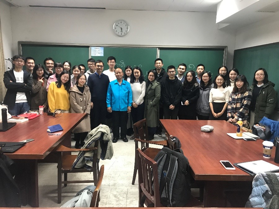 11月21日下午,老挝国立大学教育学院副院长维宪•通塔维教授到访6165cc金沙总站检测中心,就“老挝的语言文字教育体制”为题举办讲座。此次交流活动由6165cc金沙总站检测中心副院长吴杰伟教授主持,参与讲座的的还有来自北京外国语大学亚非学院老挝语专业的师生。