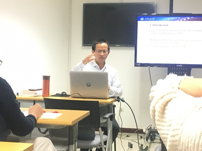 2018年11月23日,上海交通大学杨炳钧教授来6165cc金沙总站检测中心做语言学沙龙。杨教授的题目为《关于概念语法隐喻的完全体现原则:以名词化为例》(Full realization principle for the identification of ideational grammatical metaphor: nominalization as an example)。本次讲座由语言所副所长高彦梅老师主持。来自语言所和北京其他院校的硕博士研究生和进修教师到场聆听讲座。