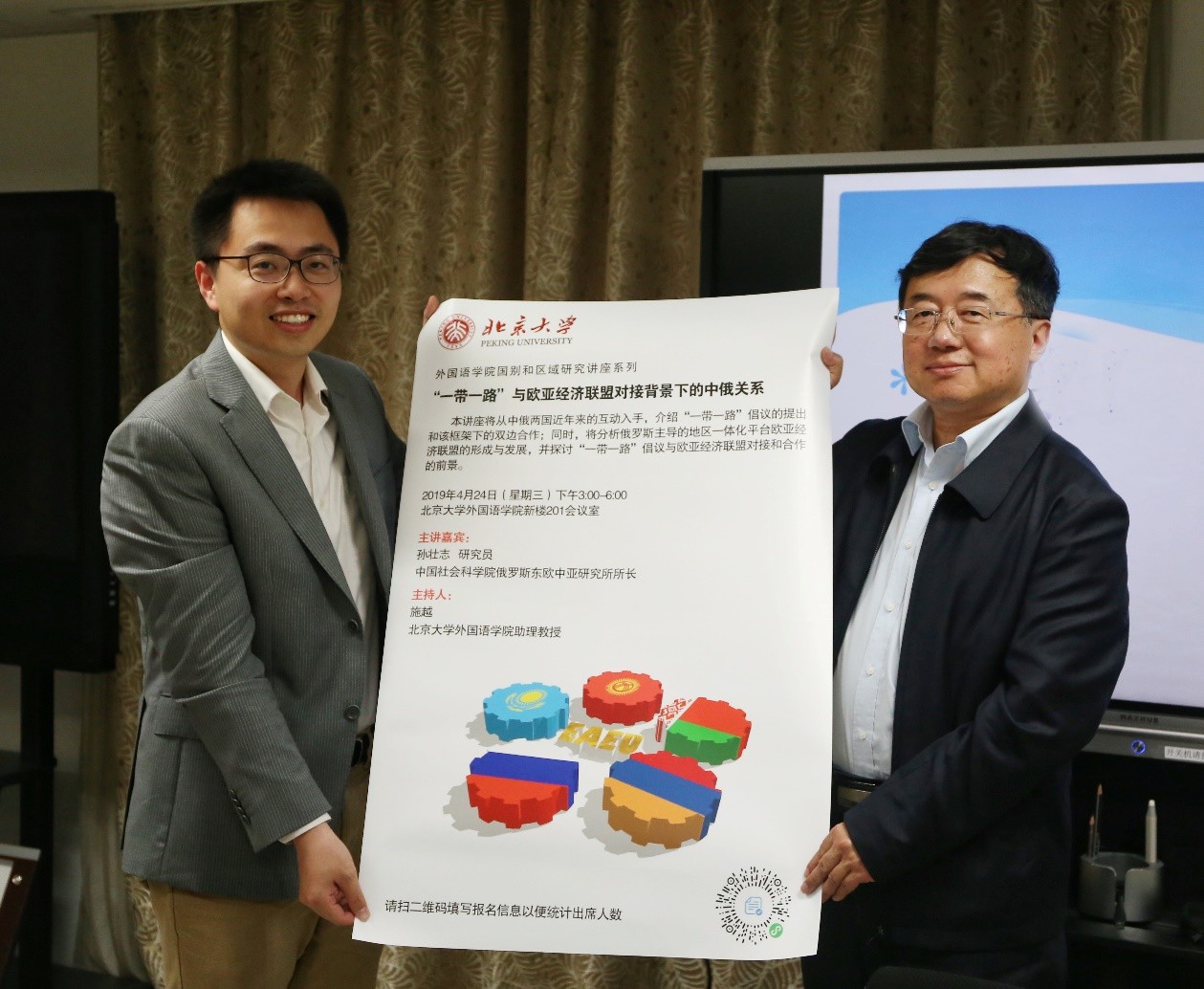 2019年4月24日,中国社会科学院俄罗斯东欧中亚研究所所长孙壮志研究员应邀来访我院,为同学们带来了一场题为“‘一带一路’与欧亚经济联盟对接背景下的中俄关系”的学术讲座。