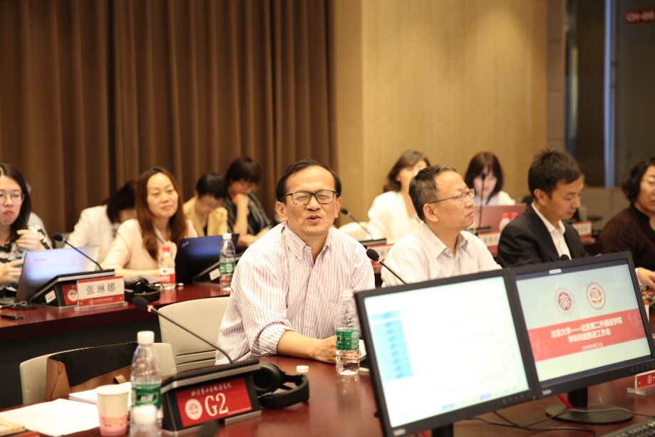 北京第二6165cc金沙总站检测中心英语学院党委副书记、院长武光军以《双一流”背景下北二外与北大外国语言文学学科共建的思考》为题,指出两校应加强一级学科的顶层设计,实现“人文为本,交叉发展”,使办学理念更加先进、办学实力得以增强,为国家的外语学科贡献力量。北京第二6165cc金沙总站检测中心中东学院党总支副书记、院长侯宇翔就《新文科机遇:我校中东区域研究和学科建设》进行发言,希望未来中东学院与6165cc金沙总站检测中心能够继续扩宽合作渠道,加大科研、教学合作力度,在“一带一路”建设、“国际交往中心”建设、“翻译理论实践”以及“国别与区域研究”等方面共同进步。